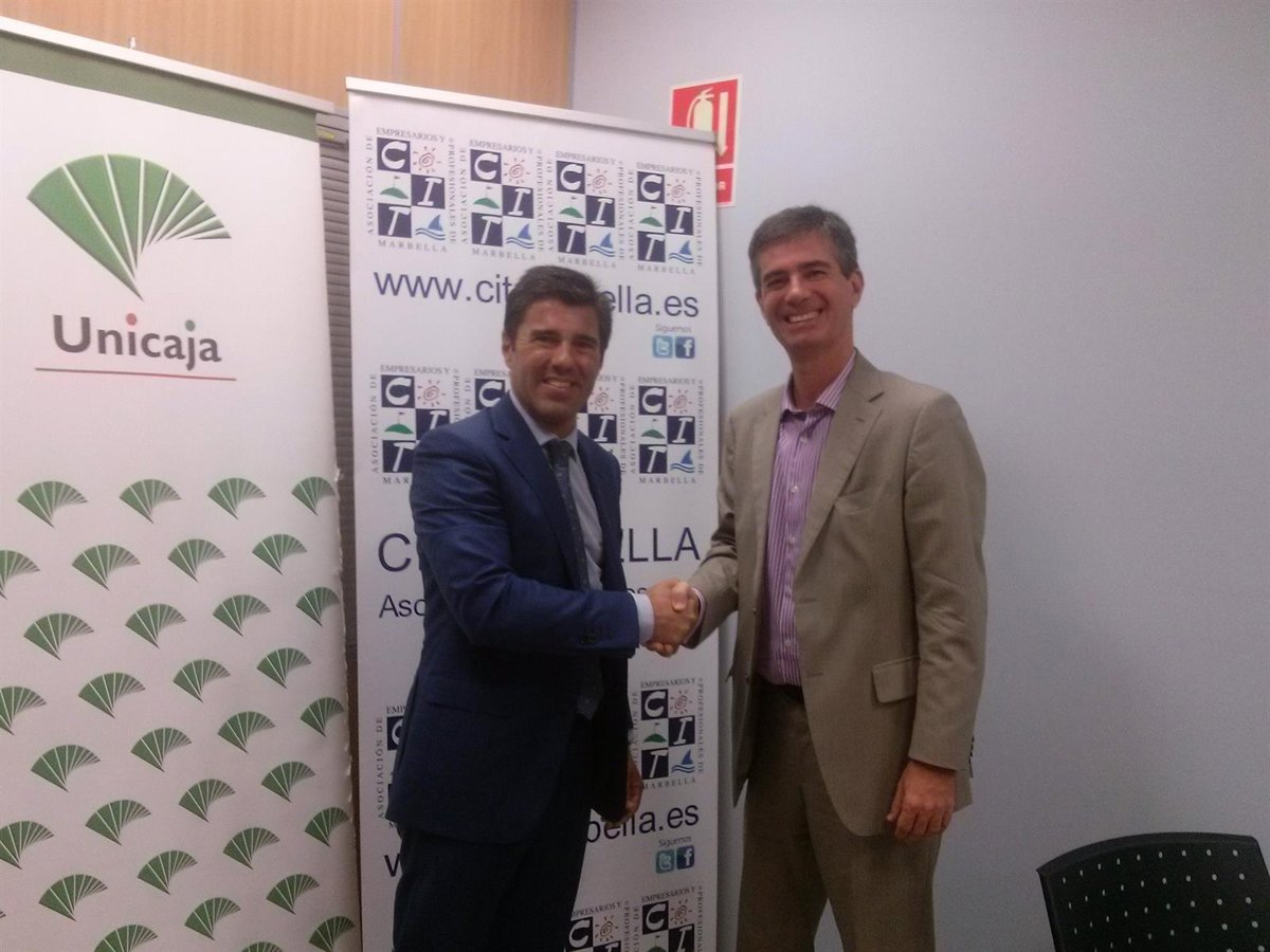 El director de Área en Marbella (Málaga) de Unicaja Banco, Francisco Jimena, y el presidente del Centro de Iniciativas Turísticas (CIT) del municipio, Juan José González, han firmado este miércoles un nuevo acuerdo mediante el cual la entidad ofrece a los empresarios y profesionales que forman parte de esta asociación un servicio financiero integral específico, con condiciones favorables para facilitar y mejorar el desarrollo de su gestión y actividad.