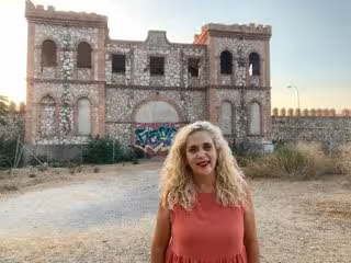 Remedios Ramos, concejala de IU, ante el edificio del Campamento Benítez cuyo mal estado ha denunciado - UNIDAS PODEMOS