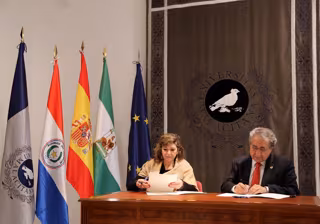 El rector de la Universidad de Málaga (UMA), José Ángel Narváez, y la ministra de Turismo del Gobierno de Paraguay, Marcela Bacigalupo, han firmado este viernes un convenio de colaboración, en el que se establece un marco de colaboración para emprender acciones conjuntas en el ámbito del turismo.