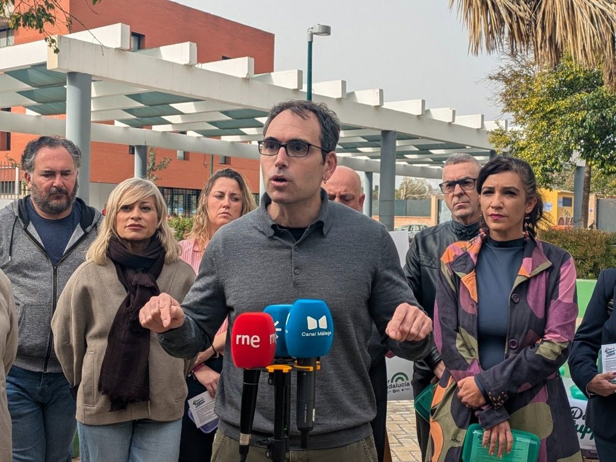 El coordinador regional de IU Andalucía y diputado en el Congreso por Sumar, Toni Valero, en rueda de prensa. - IU