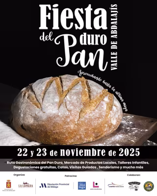 Sabor a Málaga, la marca con la que la Diputación malagueña pone en valor los productos agroalimentarios y la gastronomía de la provincia, promueve por segundo año consecutivo la Fiesta del Pan Duro del municipio de Valle de Abdalajís, un evento popular que se celebrará este fin de semana, 22 y 23 de noviembre, y que espera reunir a más de 2.000 personas.