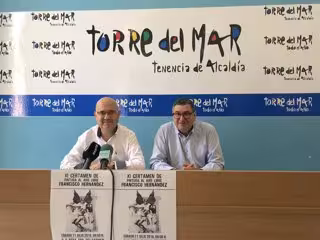 El alcalde de Vélez-Málaga, Antonio Moreno Ferrer, y el teniente de alcalde de Torre del Mar, Jesús Pérez Atencia, han presentado la undécima edición del Certamen de Pintura al Aire Libre Francisco Hernández, que organizan conjuntamente la delegación de Cultura del Ayuntamiento y la Tenencia de Alcaldía el próximo 21 de julio.