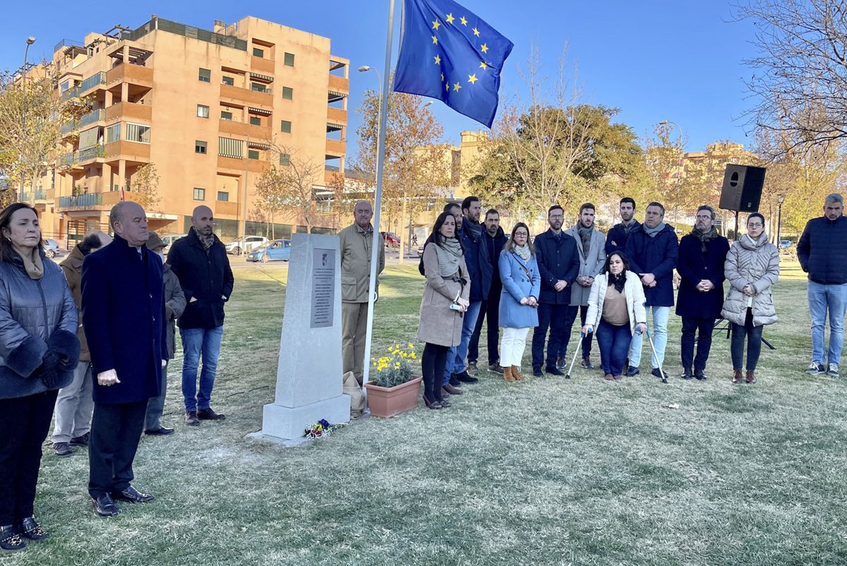 Los portavoces de los grupos políticos con representación municipal han leído el acuerdo plenario en el que se sustenta el desarrollo de este homenaje, procediéndose a continuación al descubrimiento del monolito por parte de representantes de la sociedad civil presentes. Tras un simbólico minuto de silencio, cerró el acto el alcalde concluyendo con la interpretación del Himno de la Alegría como expresión musical de los ideales europeos de paz, libertad y solidaridad.