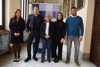 La concejala de Servicios Operativos y Fiestas, Teresa Porras, junto a los representantes de las diferentes empresas y entidades que van a hacer posible esta iniciativa, han firmado el convenio para este nuevo espectáculo.
