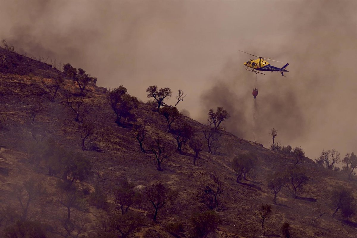 Medios aéreos combaten un incendio declarado en la zona de Monte Coronado en Málaga. A 1 de septiembre de 2025, en Málaga (Andalucía, España). - Álex Zea - Europa Press