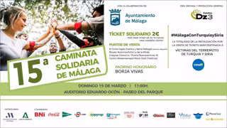 La XV Caminata Solidaria de Málaga, que se celebrará el domingo 19 de marzo a partir de las 11.00 horas con salida y llegada en el Auditorio Municipal Eduardo Ocón del Paseo del Parque, destinará el dinero recaudado a ayudar a las víctimas del terremoto producido en Turquía y Siria, a través de la ONG Cesal.
