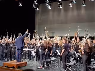 En total, esta banda, en la que han tomado parte alumnos y alumnas de entre 10 y 22 años, ha estado integrada por trece intérpretes de clarinete, cinco de tubas y de percusión, cuatro de trompeta, de trompas, de trombones y de saxos altos, tres de saxos tenores y de bombardinos, dos de flautas y de fliscornos, y uno de flautín, de fagot, de oboe, de saxo barítono, de violoncello y de contrabajo.