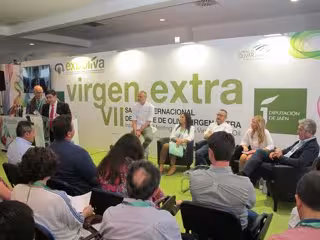 Expoliva 2019 ha sido escenario de la mesa redonda 'La excelencia del aceite y la cocina', organizada por la Diputación de Jaén y en la que chefs con Estrella Michelín y productores oleícolas de la provincia han subrayado la importancia del aceite de oliva virgen extra (AOVE) en la cocina.
