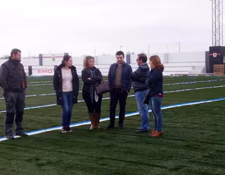 Para instalar el césped artificial en este campo de fútbol, entre otras mejoras se ha tenido que adecuar el drenaje del terreno, implantar un sistema de riego, remodelar y pavimentar las zonas perimetrales y los servicios anexos, y se han realizado las obras necesarias para sustituir el albero por un acabado de césped artificial.