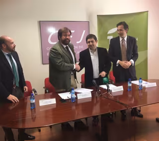 Los presidentes de la Administración provincial, Francisco Reyes, y de la entidad empresarial, Manuel Alfonso Torres, han firmado este jueves un convenio de colaboración para el desarrollo de esta iniciativa. Ha sido en un acto que ha precedido a la reunión de la junta directiva de la CEJ, a la que también ha asistido Reyes.