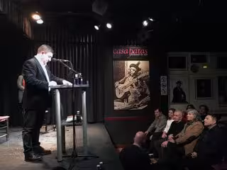 El presidente de la Diputación de Jaén, Francisco Reyes, ha presentado en la Fundación Casa Patas de Madrid el trabajo discográfico titulado 'El canto que no cesa', editado por la Administración provincial a través de la empresa discográfica Dulcimer Songs en el marco del 75º aniversario de la muerte de Miguel Hernández.