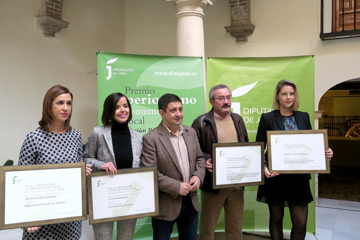 La Diputación de Jaén ha expresado su respaldo "al buen periodismo" con la concesión de los Premios de Periodismo y Comunicación Local 2018, que han recaído en LacontradeJaén, Multimedia Jiennense, Lorena Cádiz y Manuela Rosa en Internet, televisión y prensa escrita.