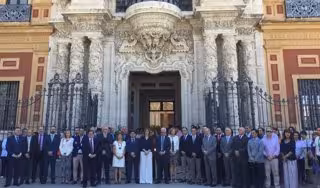 El presidente de la Administración provincial, Francisco Reyes, ha asistido al acto que se ha celebrado a las puertas del Palacio de San Telmo, en Sevilla, junto a la presidenta de la Junta de Andalucía, Susana Díaz, y al resto de presidentes de las diputaciones andaluzas.