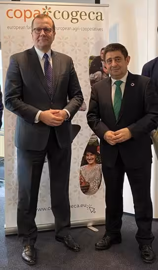 La primera de estas reuniones se ha centrado en un encuentro mantenido con Pekka Pesonen, secretario general de Copa-Cogeca, organización en la que están representadas setenta organizaciones profesionales agrarias y cooperativas de Europa.