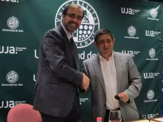 El presidente de la Diputación de Jaén, Francisco Reyes, y el rector de la UJA, Juan Gómez, han suscrito este viernes el convenio de colaboración en virtud del cual la Administración provincial aporta 24.000 euros que irán destinados a la contratación de una dietista-nutricionista.
