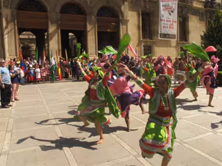 La Asociación de Coros y Danzas 'Mazantini', de Ciudad Real, el grupo 'Nrutyeshwar' de India y el Ballet Nacional 'Ceiba' de Guinea Ecuatorial son los invitados, junto a la Asociación Provincial de Coros y Danzas 'Lola Torres', en esta trigésima edición del Folk del Mundo que se inicia este viernes en el Auditorio de la Alameda de la capital y que ha ofrecido por la mañana un primer avance con la exhibición que han realizado a las puertas de la Diputación los bailares y músicos de estos grupos.