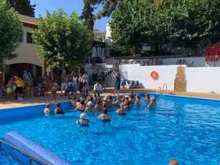Medina se ha desplazado hasta La Guardia (Jaén) para visitar uno de los talleres que se están desarrollando en el marco de este programa, en concreto, el dedicado a aguagym, que cuenta con la participación de más de medio centenar de personas y que se llevará a cabo hasta finales de agosto, de lunes a viernes.
