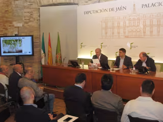 El presidente de la Diputación, Francisco Reyes, acompañado por el diputado de Agricultura, Ganadería y Medio Ambiente, Pedro Bruno, y el delegado territorial de Agricultura, Pesca y Desarrollo Rural, Juan Balbín, ha participado en esta reunión y ha puesto de relieve la importancia de este cultivo en la tarea de diversificación agrícola de la provincia de Jaén y la apuesta por cultivos que generen empleo.