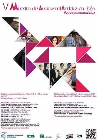 La Muestra del Audiovisual Andaluz (#yoveocineandaluz) se celebrará los días 1, 2, 3 y 10 de marzo en la Biblioteca Provincial de Jaén (17,00 horas) y en los Multicines La Loma (19,30 horas), durante los días 7 y 8 de marzo. El evento cuenta con el apoyo de la Consejería de Cultura a través de la Filmoteca de Andalucía y Asfaan, y esta la primera vez que se celebra en Jaén dentro de la programación de la Muestra de Cine Español Inédito.