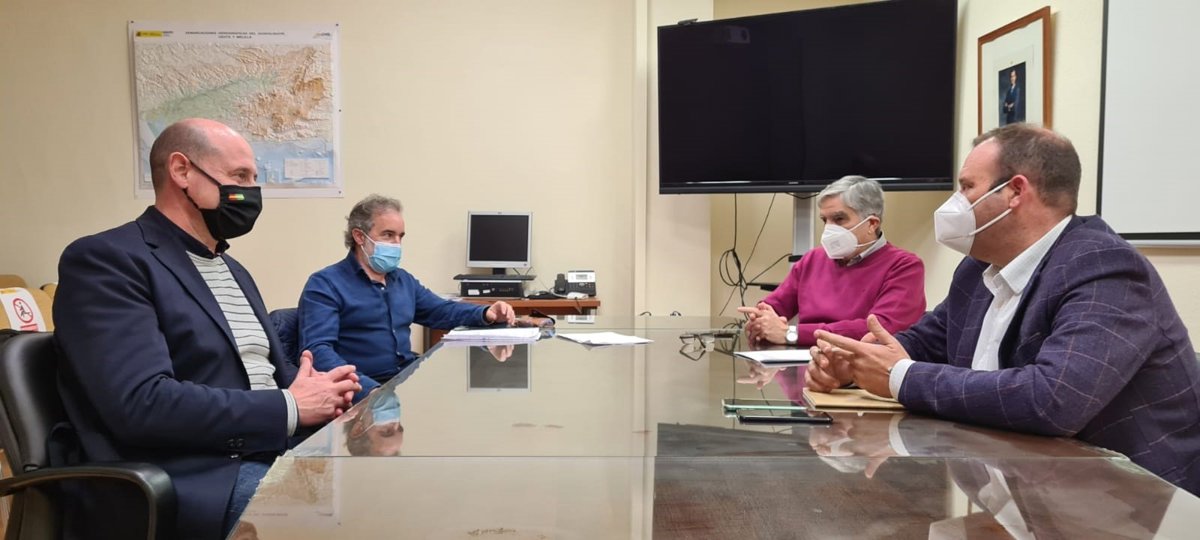 El diputado de Servicios Municipales, José Luis Hidalgo, ha analizado con representantes de la CHG el estado actual de esta intervención que se enmarca en el acuerdo suscrito entre ambas entidades para la gestión y mejora de esta red de agua desde la que se da servicio a más de 18.000 habitantes de siete municipios de la comarca de El Condado.