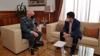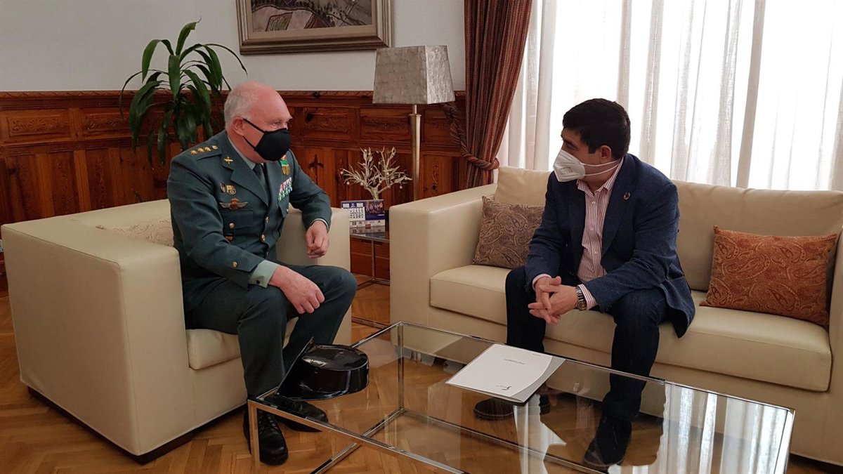 En este encuentro, celebrado en el Palacio Provincial, han abordado la colaboración entre estas ambas instituciones, en la que se encuentra la ejecución de obras por parte de la Administración provincial en leste centro, que recientemente ha acogido la jura o promesa de bandera de la 127ª Promoción, integrada por cerca de 2.000 alumnos.