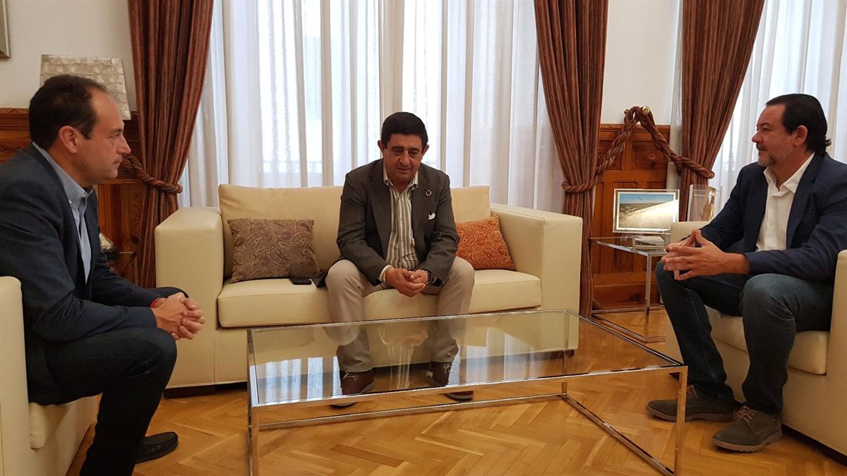 Los representantes de Semes José Eduardo Cobo y Cesáreo Fernández se también se han reunido con el alcalde, Julio Millán, con motivo del citado Día Internacional de las Urgencias y Emergencias, por el que la fachada del Ayuntamiento se iluminó anoche de azul.