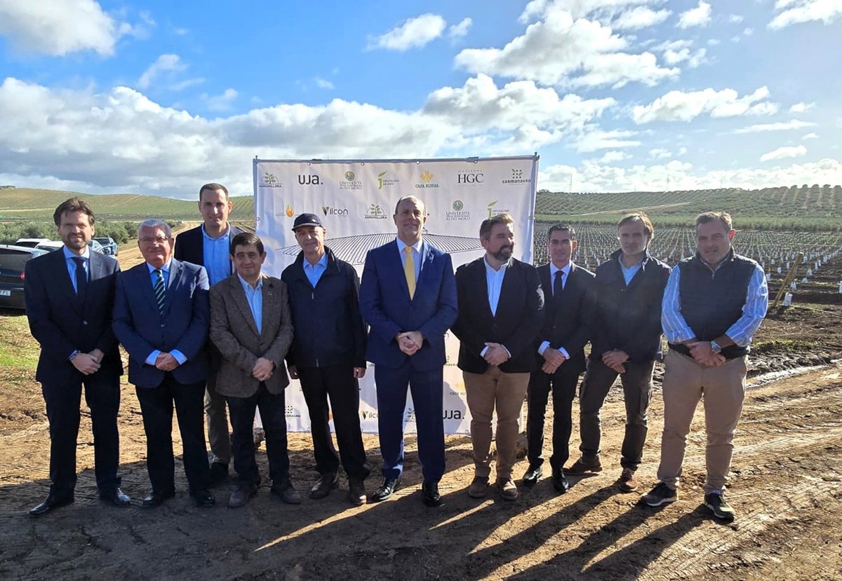 La iniciativa cuenta en Fuerte del Rey con la finca experimental Santa Rita, de 265 hectáreas de olivar en seto de regadío. Una explotación que han visitado este jueves, entre otros, el rector de la UJA, Nicolás Ruiz; el presidente de la Administración provincial, Francisco Reyes; el presidente de la Caja Rural de Jaén, Juan Núñez, así como el profesor y consultor Juan Vilar Hernández, uno de los responsables del proyecto.