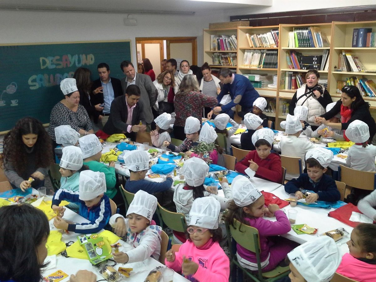 En esta actividad se enmarca el desayuno saludable, compuesto por un bollo de pan con una crema de chocolate artesanal elaborada con cacao y aceite de oliva virgen extra, de los más de 260 alumnos del Centro de Educación Infantil y Primaria Santa Capilla de San Andrés de la capital jiennense, el colegio más antiguo de Andalucía.