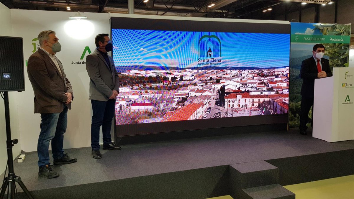 Fitur ha acogido la presentación de un vídeo promocional dedicado a los atractivos turísticos de Santa Elena (Jaén). El presidente de la Diputación, Francisco Reyes, ha participado en este acto junto al alcalde del municipio, Ramón Coloma, y Antonio López, presidente de la Asociación de Empresarios de Santa Elena, entidad impulsora de esta iniciativa junto al Ayuntamiento santaelenero.