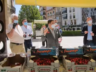La presentación de la Muestra Provincial de la Cereza ha incluido una degustación, desarrollada con medidas de seguridad y prevención, mientras que la compra del producto ha podido realizarse en el Mercado de San Francisco, ubicado junto al Palacio Provincial.