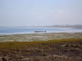 Voluntarios ambientales detectaron la presencia de la ballena durante la tarde del viernes mientras deambulaba por el litoral de El Puerto de Santa María y constataron su varamiento un día después en el saco interno de la Bahía, aunque hasta este lunes no se ha podido acceder a pie hasta el cadáver para su examen.