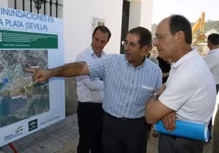 El consejero de Medio Ambiente de la Junta de Andalucía, José Juan Díaz Trillo, ha visitado este miércoles las obras de defensa contra inundaciones que lleva cabo la Agencia Andaluza del Agua en la localidad sevillana de Almadén de la Plata. Se trata de unas actuaciones que cuentan con un presupuesto que supera los 1,2 millones de euros adjudicadas el pasado mes de julio y cuyo plazo de ejecución se estima en unos once meses.