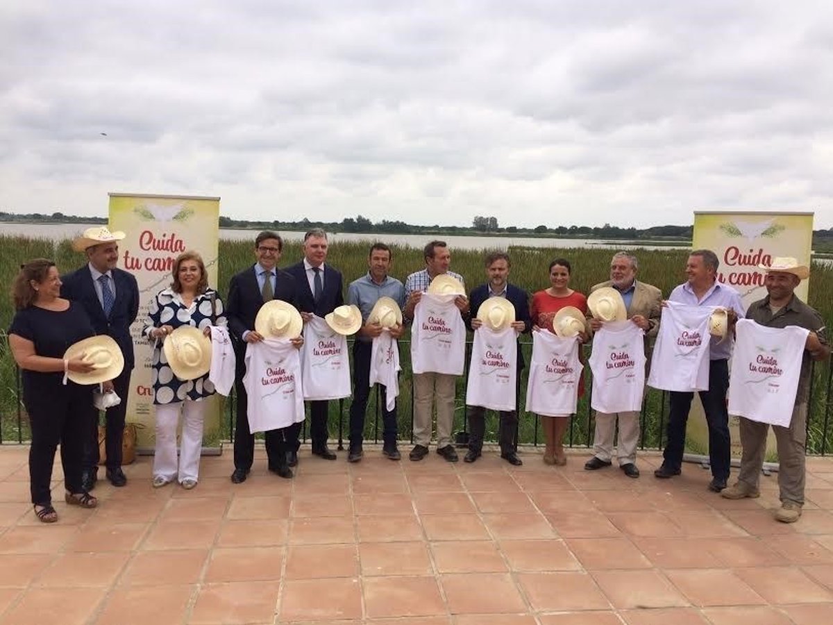 El consejero de Medio Ambiente y Ordenación del Territorio de la Junta de Andalucía, José Fiscal, ha presentado este viernes la campaña de sensibilización de la romería del Rocío 2017 'Cuida tu camino', a través de la que se repartirán 3.000 bolsas para los residuos de los peregrinos que se dirigirán a la aldea almonteña. Junto a las bolsas, la campaña repartirá pulseras, sombreros y camisetas con mensajes de concienciación para que los caminos se mantengan en las mejores condiciones posibles durante y tras la romería.