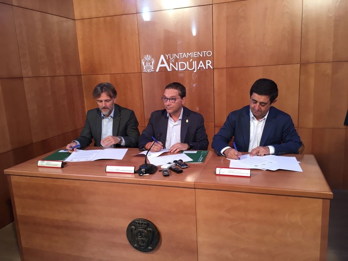 El consejero de Medio Ambiente y Ordenación del Territorio, José Fiscal, ha sido el encargado de firmar este protocolo con el presidente de la Diputación, Francisco Reyes, y el alcalde de la localidad, Francisco Huertas.