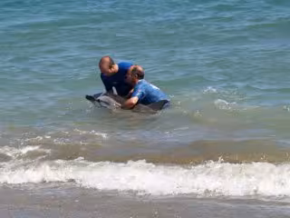 Técnicos atienden a un delfín listado en la costa de El Ejido