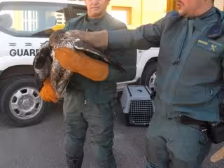 La Guardia Civil ha rescatado a un ejemplar joven de Águila perdicera (Hieraaetus fasciatus) que fue localizado en un paraje natural de Gádor (Almería) con problemas de deshidratación y una herida en una de sus patas, lo que impedía que pudiese alzar el vuelo.
