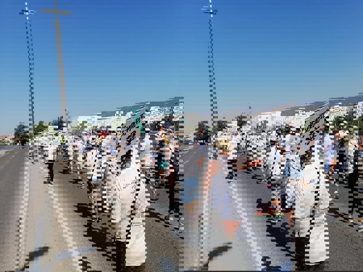 Los feriantes atravesando el Puente de El Arenal - CEFAN