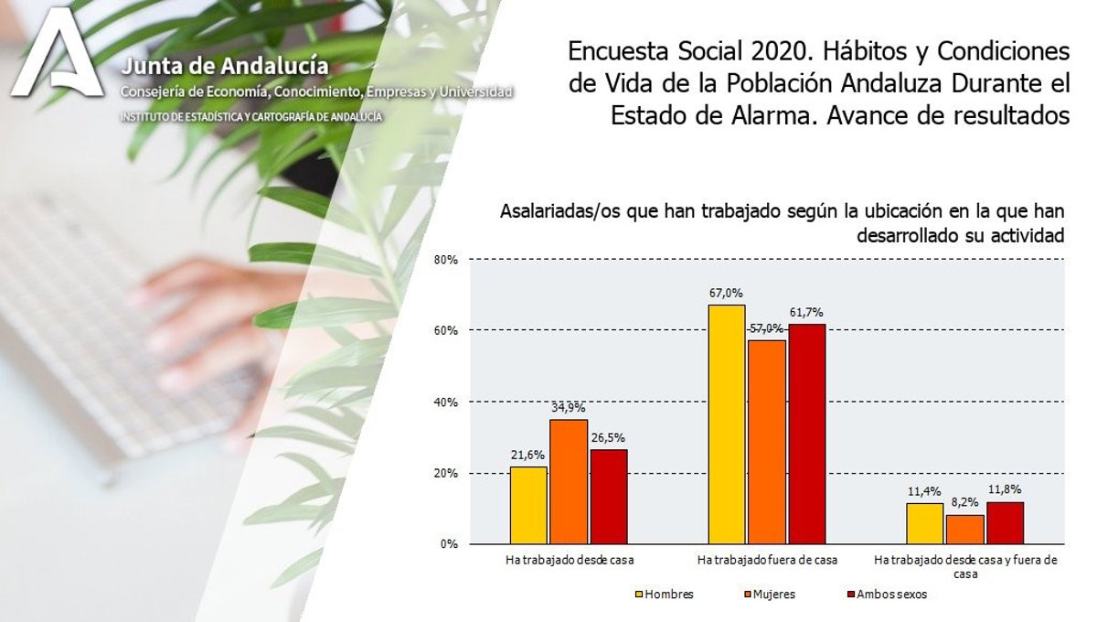 Los datos emanan de la Encuesta Social 2020. Hábitos y Condiciones de Vida de la Población Andaluza Durante el Estado de Alarma, desarrollada por el Instituto de Estadística y Cartografía de Andalucía (IECA) para conocer cómo han sido las condiciones de vida y los hábitos de la población andaluza durante el confinamiento ocasionado por el estado de alarma para contrarrestar el coronavirus.