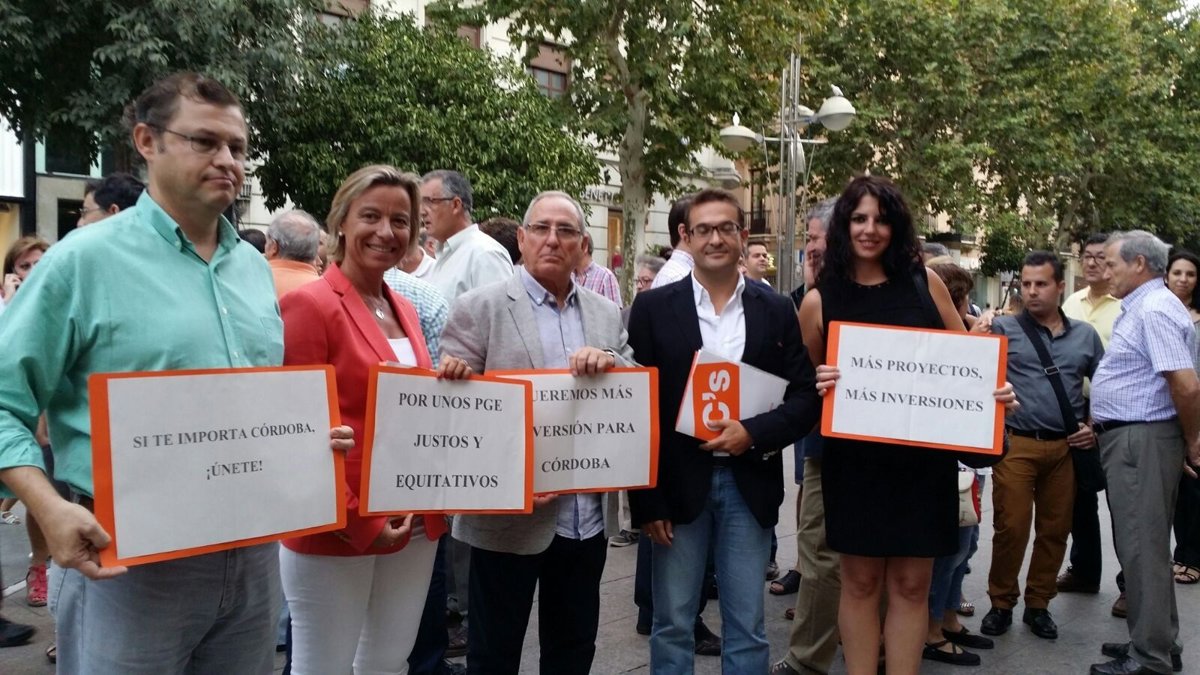 Unas 60 personas, entre cargos electos y orgánicos de Ciudadanos (C's) Córdoba, así como afiliados y simpatizantes, se han concentrado este jueves durante 16 minutos en el Bulevar de Gran Capitán de la capital cordobesa para exigir "un trato igualitario al resto de España" en las inversiones de los Presupuestos Generales del Estado (PGE).