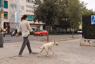 Archivo - Una mujer paseando a un perro por la calle - UGR/ARCHIVO