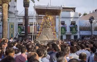 La Virgen del Rocío procesiona por las calles de Almonte en una imagen de archivo. - A. Pérez - Europa Press