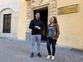 Pedro García y Ana Naranjo ante la Delegación del Gobierno andaluz en Córdoba. - ADELANTE ANDALUCÍA