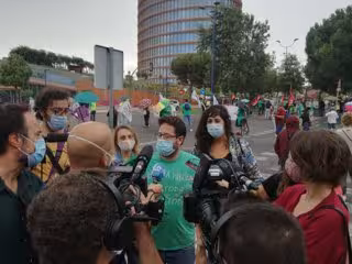 El portavoz adjunto del grupo parlamentario de Adelante Andalucía, José Ignacio García, atendiendo a los medios en la protesta - ADELANTE
