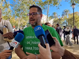 Así lo ha indicado en declaraciones a los medios al inicio de la marcha, que ha partido desde San Telmo, en las que ha añadido que en los presupuestos de 2024 "no solo es que no se vaya a mejorar la ratio o las condiciones de los docentes, sino que además hay un 13% de recorte en la Agencia Pública de Educación de Andalucía, que es la que se encarga del transporte escolar, los comedores, las obras en colegios, el aula matinal o las PTIS".
