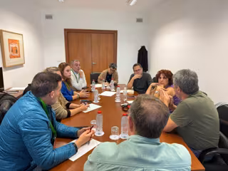 Imagen de este lunes del encuentro de los diputados de Adelante, Maribel Mora y José Ignacio García, con trabajadores del Servicio 112. - ADELANTE ANDALUCÍA