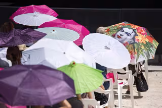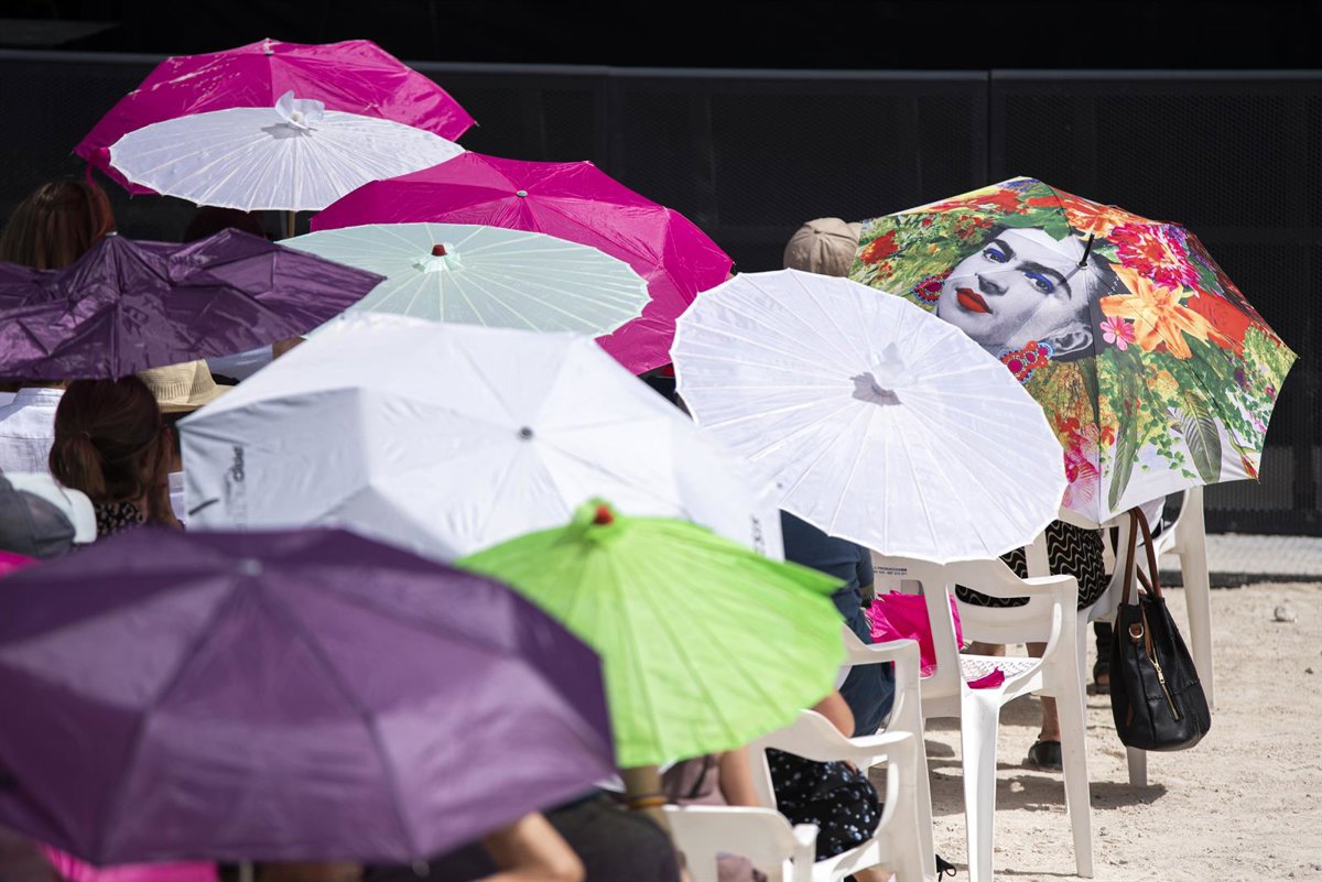 Asistentes utilizan paraguas para protegerse del sol y de la ola de calor en la Fiesta de la Primavera de Podemos, a 22 de mayo de 2022, en Valencia, Comunidad Valenciana, (España). Este evento reúne a la cúpula de la formación y sus bases y tendrá el a - Europa Press