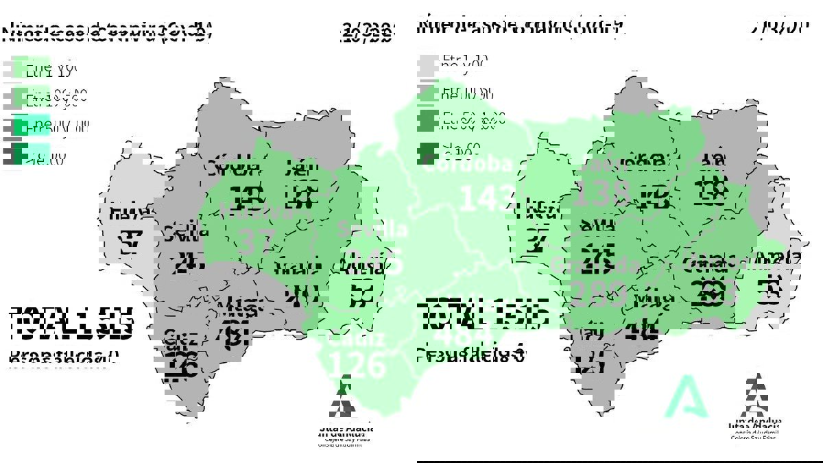 El desglose de los datos pone de manifiesto que Málaga continúa siendo la provincia con más pacientes afectados, con 484 casos, seguida de Granada con 289 casos; Sevilla con 245; Córdoba con 143; Jaén con 138; Cádiz con 126; Almería con 53, y Huelva con 37.