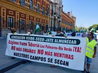 El colectivo de regantes sigue así con las movilizaciones que ha promovido este colectivo de regantes por "las reivindicaciones de agua para el campo, allí donde se toman las decisiones", y que ya los ha llevado a Sevilla, frente al Palacio de San Telmo, y Granada, ante la sede de la Junta en esta provincia.