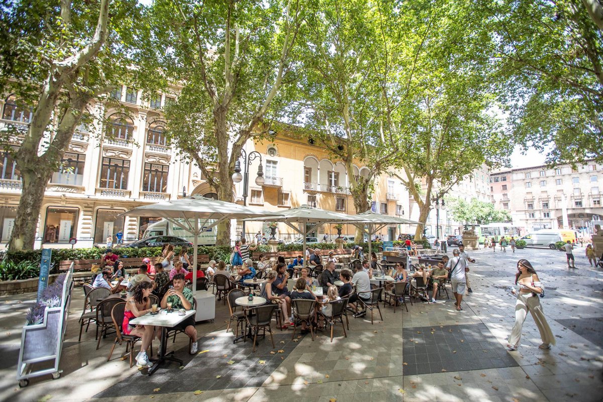 Varias personas en la terraza de un bar, a 11 de julio de 2023, en Palma de Mallorca, Mallorca, Baleares (España). La Agencia Estatal de Meteorología (Aemet) ha activado la alerta naranja en Baleares por una masa de aire cálido de origen africano que de - Toms Moy - Europa Press