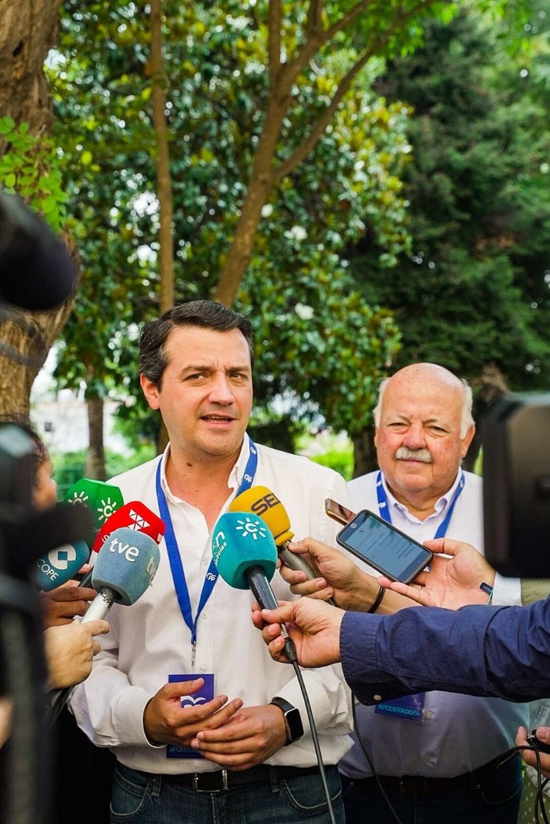 El alcalde y candidato del PP a la Alcaldía de Córdoba, José María Bellido, con el dirigente 'popular' Jesús Aguirre. - PP CORDOBA